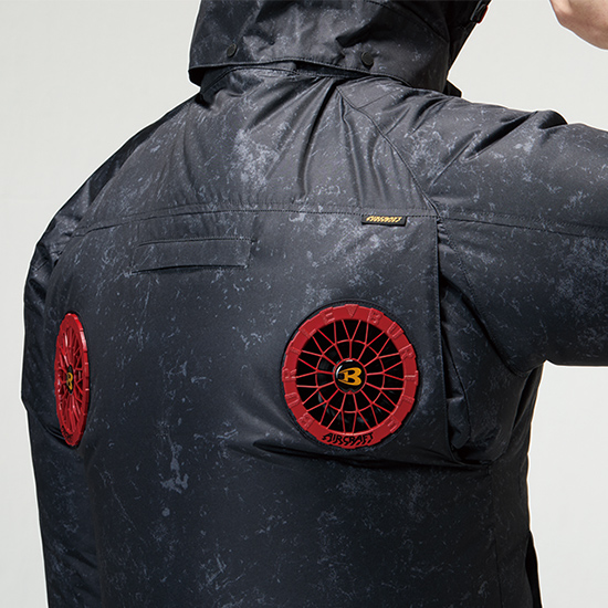 ファンを上部に配置することで脇と首から風抜けが強く爽快感を感じる仕様。