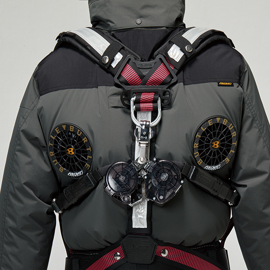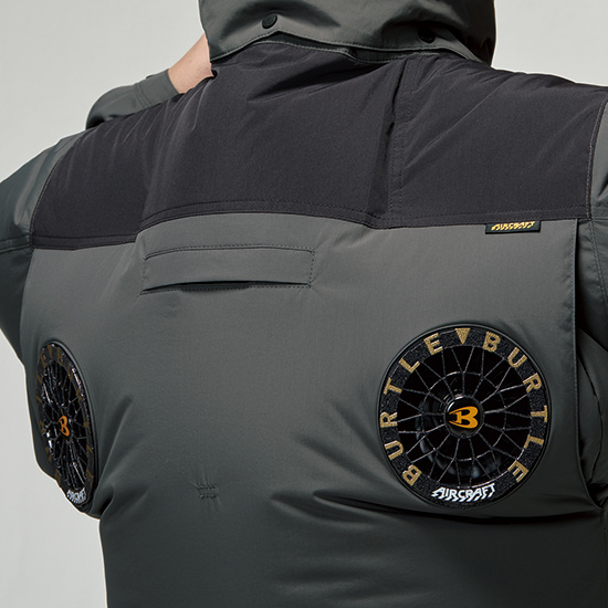 上部にファンが付いていることで脇と首の風抜けが抜群!清涼感をすごく感じる仕様です。