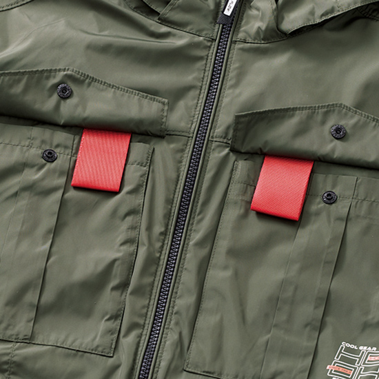 - ・取り外し可能なフード付きでフードを被れば頭まで涼しい