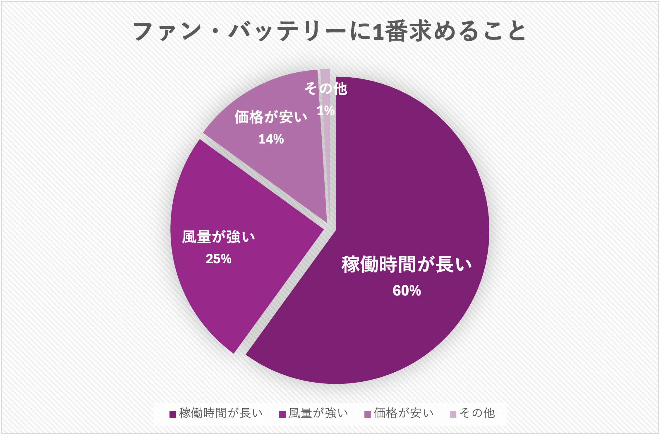 どれだけ強い風が出ても、短い時間で電池が切れるよりも、長時間動いて欲しいと思う方が半数以上を占めました。